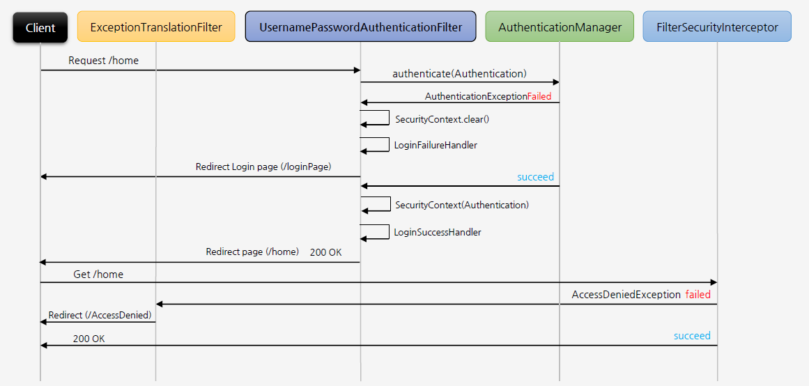 인증에 실패할 경우, AuthenticationException을 발생시킴.