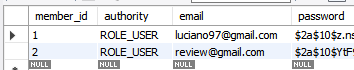 "review@gmail.com"의 member_id인 2를 key값으로 검색했다.